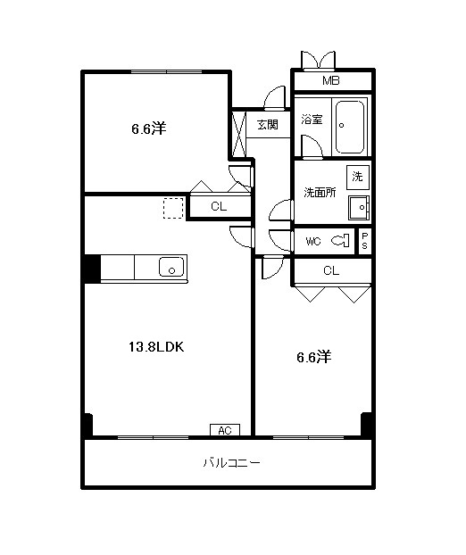 ゆとりある13帖のリビングと6帖の洋室♪バルコニーも広いです!