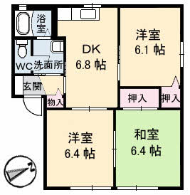| 間取り | 2LDK(洋室6.1帖 洋室6.4帖 LDK13.2帖) | 向き | 東 |
