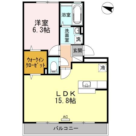 | 間取り | 1LDK(洋室6.3帖 LDK15.8帖) | 向き | 西 |