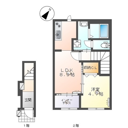 | 間取り | 1LDK(洋室4.7帖 LDK8.9帖) | 向き | 南 |