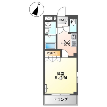 | 間取り | 1K(洋室9.1帖 K4.0帖) | ||
