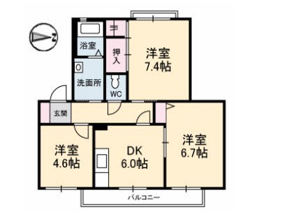 | 間取り | 3K(洋室4.5帖 洋室5.9帖 洋室6.4帖 K5.2帖) | 向き | 東 |
