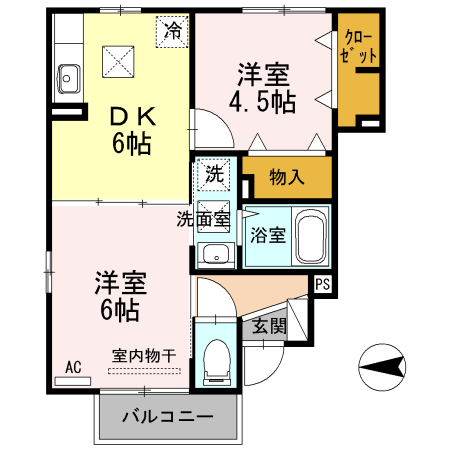 | 間取り | 2DK(DK6帖 洋室4.5帖 洋室6帖) | ||