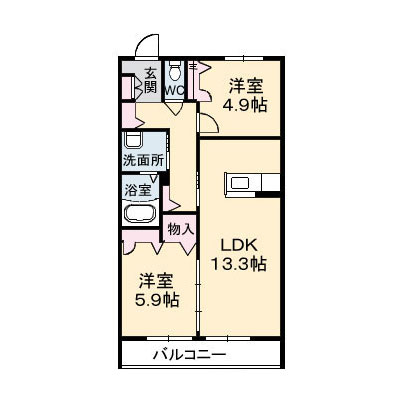 | 間取り | 2LDK(洋室4.9帖 洋室5.9帖 LDK13.3帖) | ||