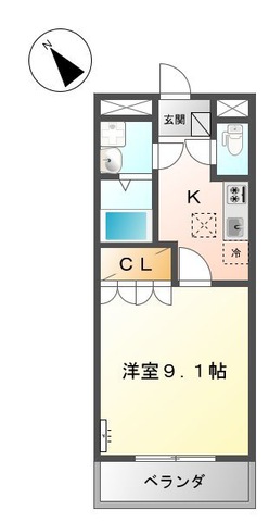 | 間取り | 1K(洋室9.1帖 K3帖) | ||
