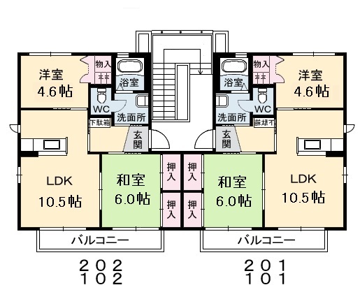 | 間取り | 2LDK(和室6帖 洋室4.6帖 LDK10.5帖) | ||