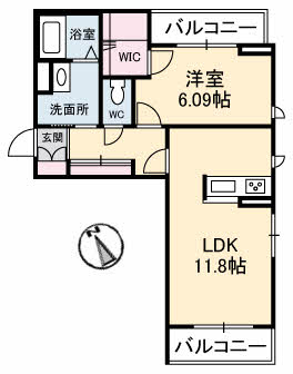 | 間取り | 1LDK(洋室6.09帖 LDK11.8帖) | 向き | 南西 |