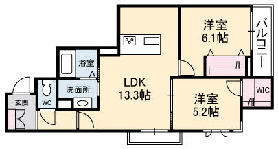 | 間取り | 2LDK(洋室6.1帖 洋室5.2帖 LDK13.3帖) | ||